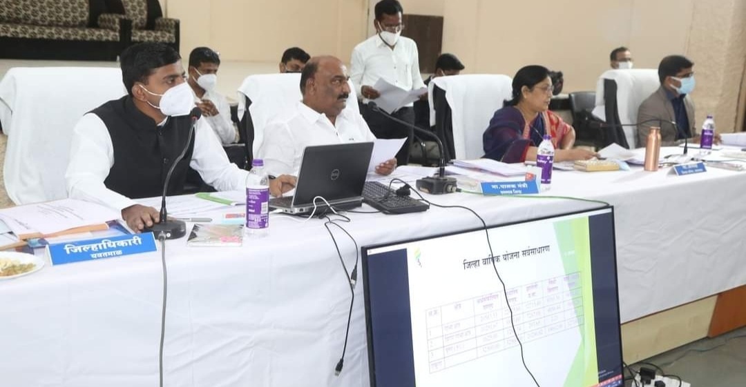 आज जिल्हाधिकारी कार्यालयातील बचत भवन येथे 2021-22 मधील निधीचे पुनर्विनियोजन आणि 2022 -23 मधील प्रस्तावित आराखड्यास मान्यता देण्यासाठी जिल्हा नियोजन समितीची बैठक पार पडली. यावेळी कोविड निर्बंधामुळे पालकमंत्री यांनी जिल्हा नियोजन समितीचे सदस्य आणि अंमलबजावणी यंत्रणांचे प्रमुख यांच्याशी दूरदृष्य प्रणालीद्वारे संवाद साधला. या बैठकीला आमदार सर्वश्री मदन येरावार, प्रा.अशोक उईके, इंद्रनील नाईक, संदीप धुर्वे, संजीवरेड्डी बोदकूलवार, जिल्हाधिकारी अमोल येडगे, मुख्य कार्यकारी अधिकारी डॉ. श्रीकृष्ण पांचाळ, पोलीस अधीक्षक डॉ दिलीप भुजबळ पाटील, आदिवासी प्रकल्प विकास अधिकारी विवेक जॉन्सन, अप्पर जिल्हाधिकारी डॉ दुबे, निवासी उपजिल्हाधिकारी ललीतकुमार वऱ्हाडे, जिल्हा नियोजन अधिकारी मुरलीनाथ वाडेकर, समाजकल्याण सहाय्यक आयुक्त श्री चव्हाण हे बचत भवन येथून तर खासदार हेमंत पाटील, बाळू धानोरकर, भावना गवळी, आ. वजाहत अली मिर्झा, तसेच इतर अधिकारी दूरदृश्य प्रणालीद्वारे सहभागी झाले होते.