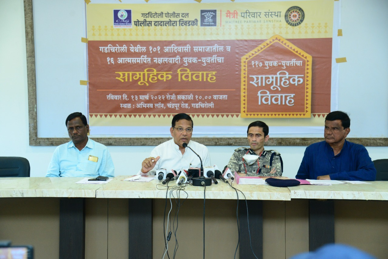 मैत्री परिवार संस्था नागपूर व गडचिरोली पोलीस दल, पोलीस दादालोरा खिडकी यांच्या सहकार्याने गडचिरोली येथे भव्य सामूहिक विवाह सोहळ्याचे येत्या, 13 मार्च रोजी आयोजन करण्यात आले आहे. अभिनव लॉन, चंद्रपूर रोड, गडचिरोली येथे सकाळी 10 वाजता होणा-या या विवाह समारोहात 16 आत्मसमर्पित नक्षलवाद्यांसह एकुण 117 युवक-युवतींचा विवाह राहणार आहे.