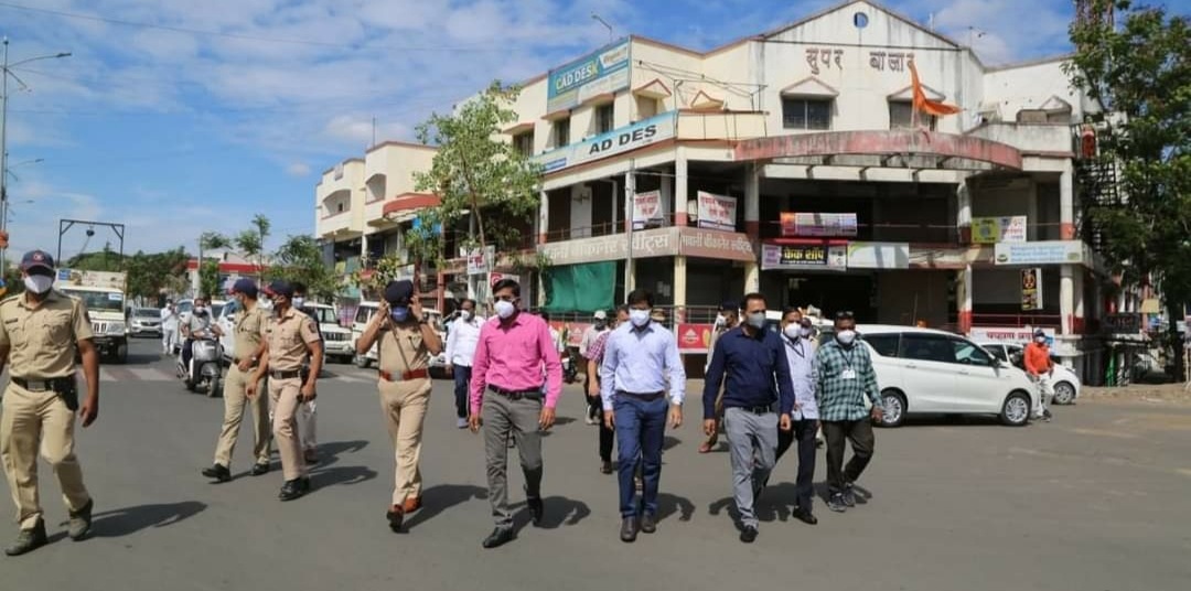 वरीष्ठ अधिका-यांसह संपूर्ण यंत्रणा यवतमाळ शहरातील एसबीआय चौकातून मेन लाईन, मारवाडी चौक, आठवडी बाजार व इतर बाजारपेठेच्या मार्गावर तब्बल तीन तास मार्गक्रमण करीत होते. यात शासन आणि प्रशासनाच्या निर्देशाप्रमाणे अत्यावश्यक सेवांचीच दुकाने दिलेल्या ठराविक वेळत सुरू आहे की नाही. कोणत्या दुकानासमोर अनावश्यक गर्दी तर नाही, दुकानदार तसेच ग्राहकांकडून सुचनांचे पालन होत की नाही, आदींची त्यांची पाहणी केली. तसेच काही किराणा दुकानदारांसोबत संवादही साधला.