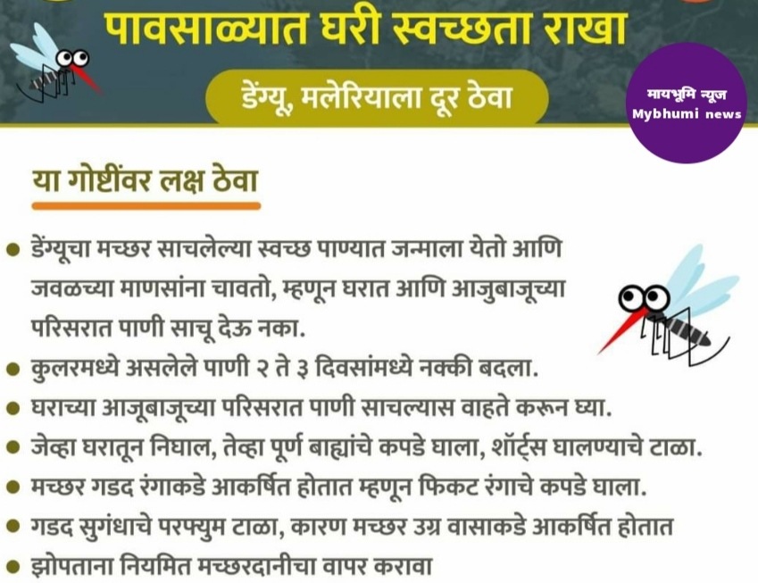 Breaking News पावसाळा सुरू झालाय,डेंग्यू मलेरियाच्या मच्छर तयार होणार नाही याची काळजी घ्या By Randhumali - June 18, 2021 0 8 Share FacebookWhatsAppTelegram पावसाळा सुरू झालाय. त्यामुळे यापूर्वी वापरात असलेल्या कुलरमधील पाणी काढून टाकी स्वच्छ करा. डेंग्यू मलेरियाच्या मच्छर तयार होणार नाही याची काळजी घ्या…