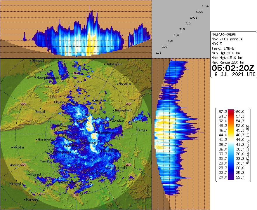 भारतीय हवामान खात्याने नागपूर जिल्ह्यात काही ठिकाणी दिनांक *८ जुलै रोजी ऑरेंज अलर्ट देत मुसळधार ते अतिमुसळधार स्वरूपाचा पाऊस व वादळीवाऱ्यासह विज* पडण्याची शक्यता वर्तवली आहे. *दिनांक ९ जुलै रोजी एक किंवा दोन ठिकाणी विज व वादळीवाऱ्यासह मुसळधार पाऊस* पडण्याची शक्यता वर्तवली आहे. तसेच दिनांक १० जुलै ते १२ जुलै या कालावधी मध्ये बऱ्याच ठिकाणी हलक्या ते मध्यम स्वरूपाचा पाऊस पडण्याची शक्यता वर्तवली आहे.