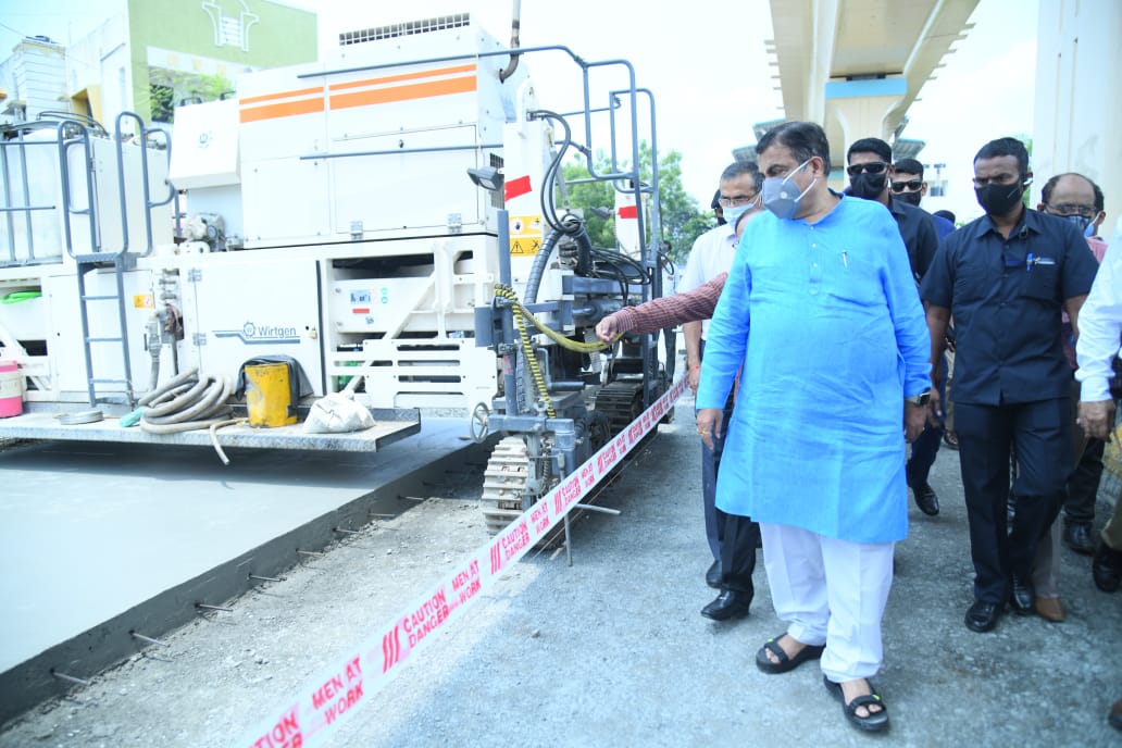 अल्ट्रा थीम व्हाईट टॉपिंग (टीडब्ल्यूटी) या तंत्रज्ञानाचा नागपूर येथे पहिल्यांदाच प्रायोगिक तत्त्वावर वापर करण्यात येत आहे. हा रस्ता 13.85 किलो मीटर लांबीचा असून या संपूर्ण रस्त्यावर 128 कोटी 28 लक्ष रुपये खर्च होणार आहे. हा संपूर्ण सिमेंट मार्ग चोवीस महिन्यात पूर्ण करायचा आहे. या रस्त्यावर पातळ काँक्रिटच्या म्हणजेच 180 मी. मी. जाडीचा वापर करण्यात येणार आहे. याला आयआरसीची मान्यता आहे. रस्त्याच्या एकूण खर्चात कशा पद्धतीने बचत करता येईल व नाविन्यपूर्ण पद्धतीने रस्ता बनवता येईल या उद्देशाने सुरु असलेल्या कामांची माहिती केंद्रीय मंत्री श्री. गडकरी यांनी घेतली.