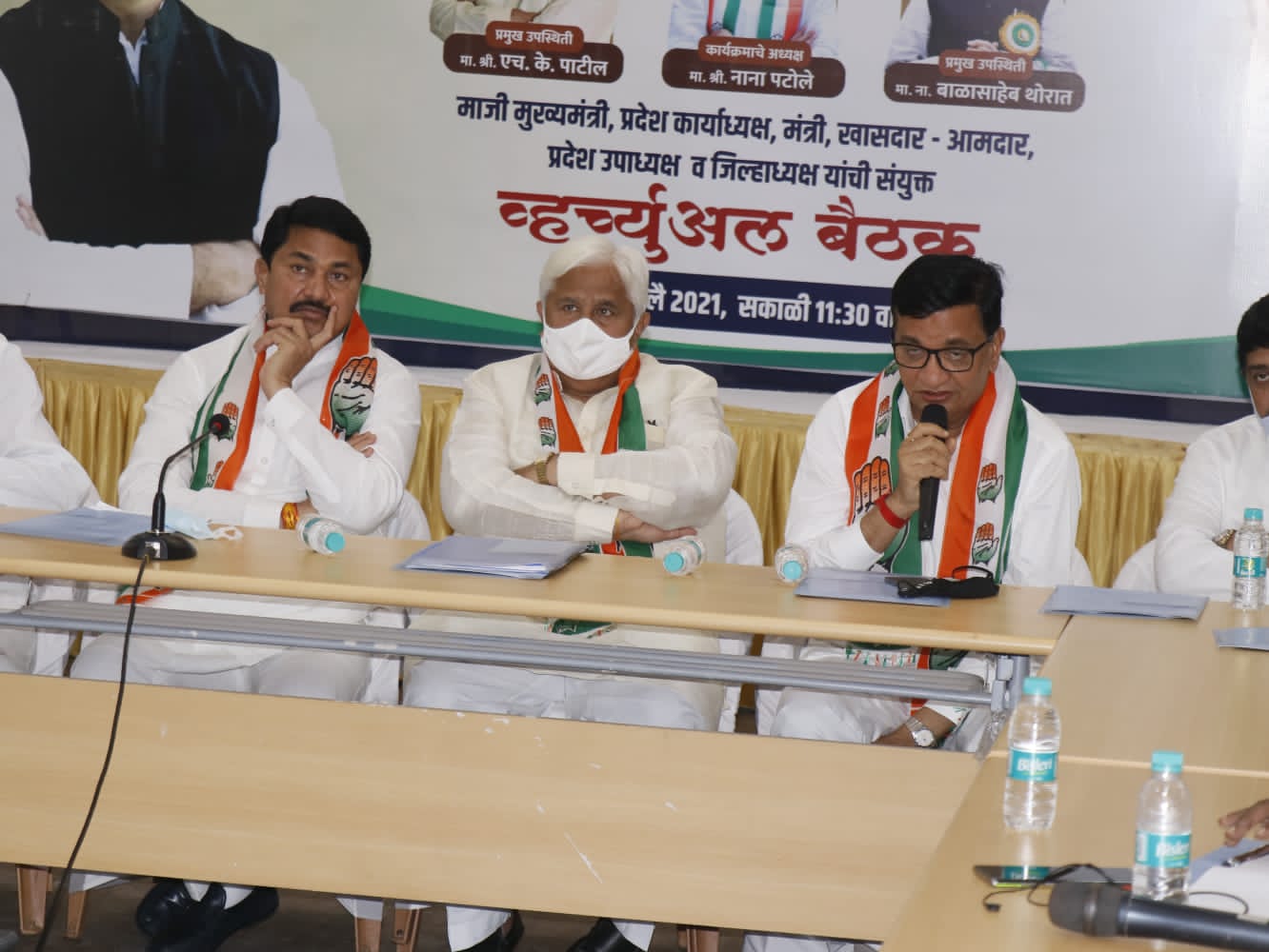 आगामी स्थानिक स्वराज्य संस्थांच्या निवडणुकासंदर्भात महाराष्ट्र काँग्रेस प्रभारी एच. के. पाटील यांच्या प्रमुख उपस्थितीत आणि प्रदेशाध्यक्ष नाना पटोले यांच्या अध्यक्षतेखाली प्रमुख नेत्यांची बैठक पार पडली, त्यानंतर जिल्हाध्यक्ष, आमदार व पदाधिका-यांची ऑनलाईन बैठक झाली. या बैठकीला विधिमंडळ काँग्रेस पक्षाचे नेते तथा महसूल मंत्री बाळासाहेब थोरात, सार्वजनिक बांधकाम मंत्री अशोक चव्हाण, माजी मुख्यमंत्री पृथ्वीराज चव्हाण, विधान परिषदेचे माजी उपसभापती माणिकराव ठाकरे, अखिल भारतीय काँग्रेस कमिटीचे सचिव वामशी रेड्डी, बी. एम. संदीप, संपत कुमार, आशिष दुआ, सोनल पटेल, प्रदेश कार्याध्यक्ष चंद्रकांत हंडोरे, नसीम खान, बस्वराज पाटील, शिवाजीराव मोघे, आ. प्रणिती शिंदे, आ. कुणाल पाटील, प्रदेश उपाध्यक्ष मोहन जोशी, प्रदेश प्रवक्ते अतुल लोंढे उपस्थित होते.