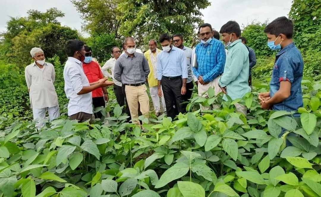जय किसान शेतकरी गटातील शेतकरी राजू सांगळे यांनी आपल्या शेतामध्ये नव्याने विकसित करण्यात आलेल्या केडीएस ७२६ (फुले संगम) वाणाच्या सोयाबीनची टोकन पद्धतीने लागवड केली असून या लागवड पद्धतीचीही जिल्हाधिकारी षण्मुगराजन एस. यांनी यावेळी पाहणी केली. तसेच दीपक घुगे यांनी ९० टक्के जैविक खते व १० टक्के रासायनिक खतांचा वापर करून डाळिंब शेती करीत आहेत. या डाळिंब बागेचीही जिल्हाधिकाऱ्यांनी यावेळी पाहणी केली.