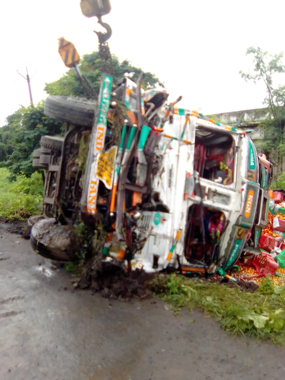 हिगणा (ता १९):- डोंगरगाव शिवारात वर्धा मार्गावर आज सकाळी ९ च्या सुमारास भरधाव ट्रक अचानक अनियंत्रित होऊन रस्त्याच्या कडेला जाऊन उलटला यात ट्रकखाली दबून क्लिनरचा जागीच मृत्यू तर चालक व एक प्रवासी जखमी झाले कृष्णा नात्थुसिंग राठोड (वय ३२) रा मुरैना (मध्यप्रदेश)असे मृतकाचे नाव असून चालक चंद्रपालसिंग तोमर व सचिन राठोड अशी जखमींची नावे आहेत. मिळालेल्या माहितीनुसार ट्रक क्र. आर जे११जी बी ४३०४ आनंतपुरम येथून टमाटर भरून ग्वाल्हेर ला जात असताना डोंगरगाव जवळ ट्रक समोर वाहन थांबल्याने तात्काळ थांबण्यासाठी ब्रेक मारले मात्र ट्रक अनियंत्रित होऊन महामार्गाच्या बाजूला असलेल्या नालीत उलटला. यात क्लिनर कृष्णा पडुन ट्रकखाली टमाटर ने भरलेल्या ढिगाऱ्यात दबून त्याचा मृत्यू झाला. तर चालक तोमर ह्याला गँभीर दुखापत झाली .त्याला बुटीबोरी येथील एका खाजगी रुग्णालयात भरती करण्यात आले आहे.केबिनमध्ये बसलेला सचिन मधात असल्याने त्याला फक्त पायाला किरकोळ दुखापत झाली.