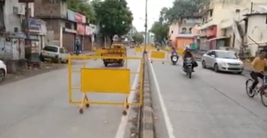 नागपुर के रेड लाइट एरिया गंगा जमुना में सुबह सुबह रास्तों पर बैरिकेट्स लगा दिए गए हालाकी गाडियों और लोगो की आवाजाही सुरु है