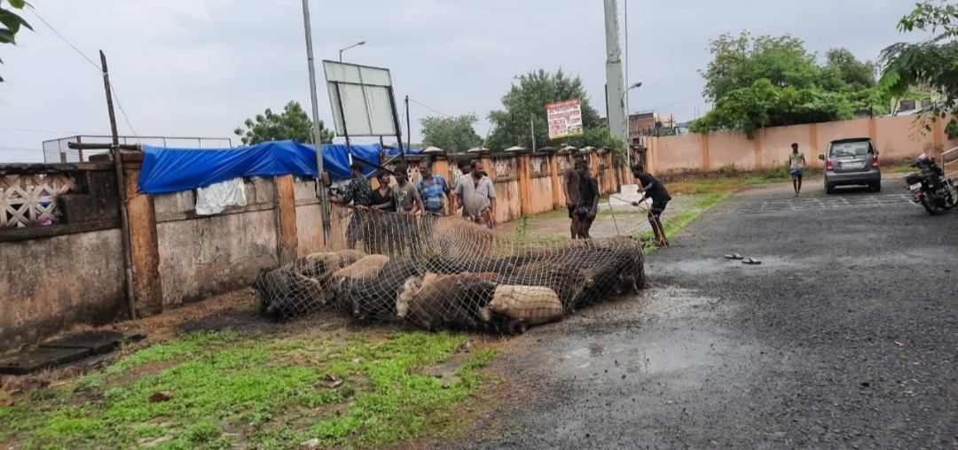 शहरातील पाळीव तसेच मोकाट डुकरांना पकडण्याकरीता तामिळनाडू येथील पथकाने बुधवारी ( ८ सप्टेंबर) रोजी ९० डुकरे पकडले.