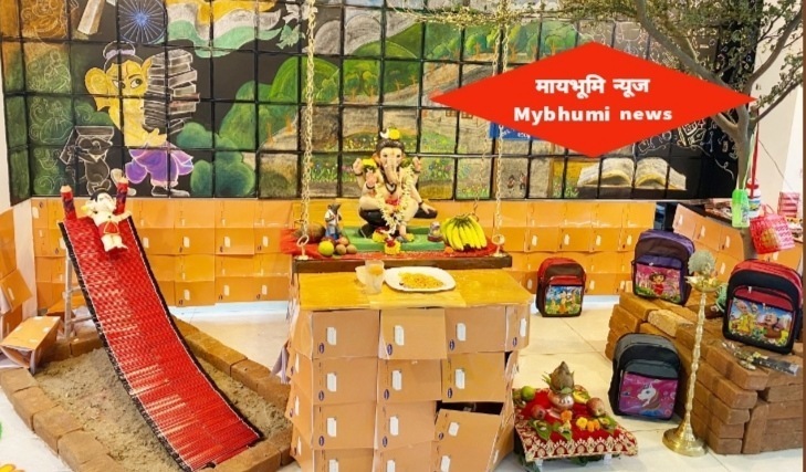 भारत देश की आज़ादी के अमृत महोत्सव पर सर्व शिक्षा अभियान के अंतर्गत एचडीएफसी सेल, गणेशोत्सव मंडल, नागपुर – 2022 ने शालेय सामग्रियों से यह सजावट की रचना की है।