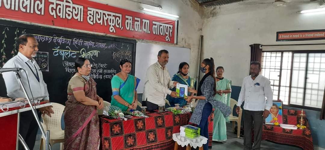 पन्नालाल देवडिया शाळेच्या विद्यार्थ्यांना टॅबलेट वितरण