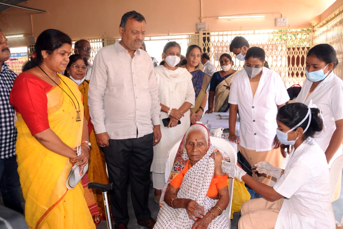 नागपूर, ता. २१ (प्रतिनिधि) : कोव्हिडवर प्रतिबंधात्मक उपाय म्हणून लसीकरणाला जानेवारी महिन्यात सुरुवात झाली. यानंतर आज गुरुवारी (ता. २१) देशातील या मोहिमेने १०० कोटींचा टप्पा पार केला. यानिमित्त आज (ता. २१) महापौर दयाशंकर तिवारी यांनी नागपूर शहरातील लसीकरण केंद्राला भेट देऊन आरोग्य कर्मचाऱ्यांचे कौतुक केले तसेच त्यांना व नागरिकांना एक मोठे उद्दिष्ट गाठण्यात सहभाग नोंदविल्याबद्दल शुभेच्छा देत अभिनंदन केले. मनपा आयुक्त राधाकृष्णन बी यांनीसुध्दा नागरिकांना लवकरात-लवकर लसीकरण करण्याचे आवाहन केले आहे.