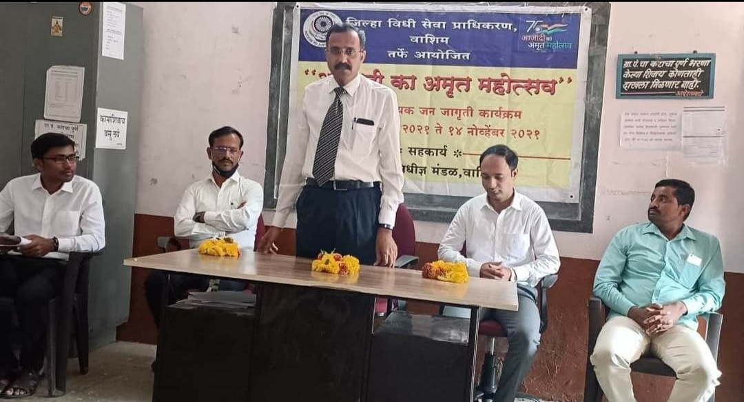 वाशिम तालुक्यातील वांगी येथे आझादी का अमृत महोत्सव या कार्यक्रमाअंतर्गत आयोजित कायदेविषयक जनजागृती शिबीरात अध्यक्षस्थानावरुन न्या. शिंदे बोलत होते. यावेळी न्या. एम.एस. पदवाड, ॲड. शुभम लुंगे यांची प्रमुख उपस्थिती होती. न्या. शिंदे पुढे म्हणाले, आई-वडिलांनी मुलांच्या नावावर संपत्ती करुन देतांना त्यांच्या स्वत:च्या उदरनिर्वाहाची तरतुद करावी असे सांगितले.