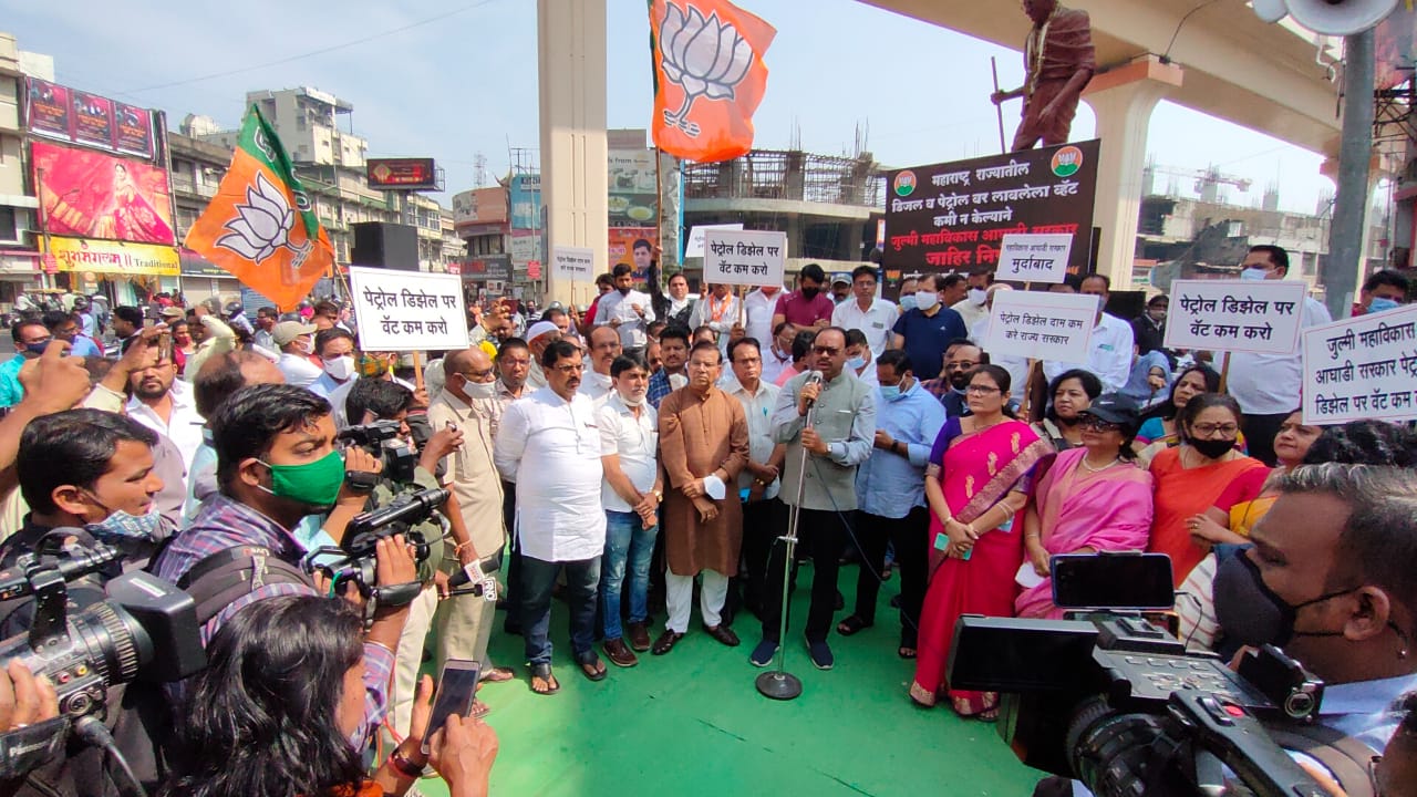 इसके पूर्व आमदार शहर अध्यक्ष प्रवीण दटके ने केंद्र सरकार ने जिस प्रकार एक्ससाइज ड्यूटी कम की है उसी प्रकार राज्य सरकार वेट कम करे और वाहनधारकों को राहत देने की मांग की, इस अवसर पर युवा मोर्चे ठाकरे सरकार मुर्दाबाद, शरद पवार मुर्दाबाद के नारे लगाते हुए महाविकास आघाड़ी के पुतले का दहन किया!