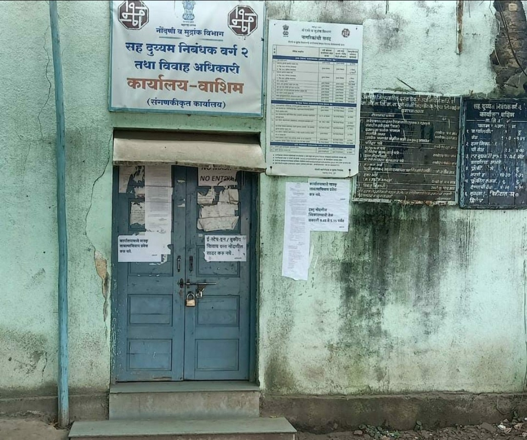 सोमवार 15 नोव्हेंबर कार्यालयीन वेळेत सहाय्यक दुय्यम निबंधक वर्ग 2 आणि विवाह अधिकारी यांचे कार्यालय बंद असून यामुळे खरेदी करण्यासाठी आलेल्या लोकांना चांगलाच मनस्ताप सहन करावा लागत आहे , विशेष म्हणजे शुक्रवारी लिंक नसल्यामुळे आणि शनिवार रविवार सुट्टी असल्यामुळे तीन दिवसानंतर कार्यालय सोमवारी उघडले होते