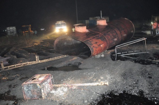 डामर के लिकेज टैंकर में वेल्डिंग के दौरान टैंकर में भरे लिक्विड में आग लग जाने के कारण विस्फोट हो गया। इस भयानक विस्फोट में वहां पर काम कर रहे दो कर्मचारियों की आग में जलने के कारण घटना स्थल पर ही मौत हो गई जबकि तीन अन्य कर्मचारी गंभीर रूप से झुलस गए।